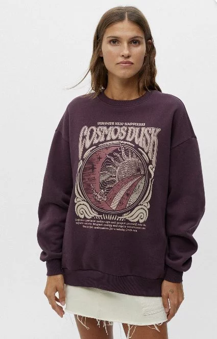 Lo mejor de las sudaderas de Pull&Bear es que tienes varios modelos para elegir: el de capucha sin cremallera, con ella, o bien sin capucha, como si fuera un jersey. Sin embargo, la más solicitada es este modelo de cuello redondo con detalle de rib en el cuello, puños, bajo y print en el pecho. Asimismo, solo se encuentra en un color y su precio final es de 22,99 euros.