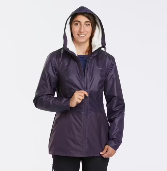 La chaqueta impermeable para mujer de Decathlon pertenece a la marca Quechua Sh200 Warm y es en color berenjena oscuro. Ha sido diseñada para tus rutas invernales por terrenos nevados, siendo cálida hasta temperaturas de -5 °C. Su capucha impermeable y las mangas con elástico integrado limitan la entrada de nieve. Cuenta con dos bolsillos cálidos de fibra polar para proteger también las manos del frío. El precio es de 29,99 euros. A continuación te mostramos otras opciones de abrigo que tiene la tienda.