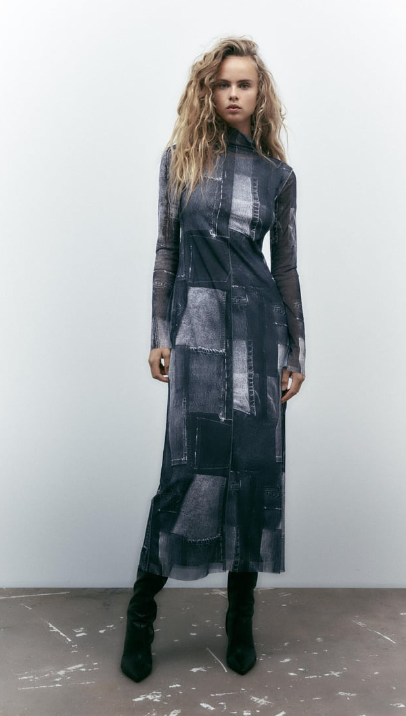 La originalidad personificada. No hace falta diseños con agujeros por lugares de lo más curiosos y colores tan vivos que te sangran los ojos al verlo, sino que es tan sencillo como coger un diseño de toda la vida y darle un toque diferente con un material tan básico como el vaquero. El vestido tul patchwork de Zara está disponible en la página web de la tienda y en sus establecimientos por el módico precio de 35,95 euros. Una pieza con un corte skinny que perfila la silueta, unas mangas largas y un cuello vuelto que estiliza la cara.