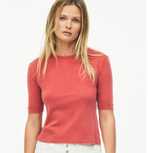 Y de lo más caro a lo más barato; de una prenda más sofisticada y plenamente otoñal a otra que la puedes combinar sola o debajo del jersey anterior, o con una cazadora, una americana... Se trata de esta camiseta de algodón con cuello redondo y manga corta, con detalles de pespuntes marcados y combinados a tono. La tienes en cuatro colores por tan solo 17,95 euros. No obstante, no es una prenda que por su tejido sea para llevar con calor, si no más bien en esos días de entretiempo como los que vivimos.