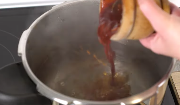Cuando mezcles bien el aceite de oliva virgen extra con el ajo triturado y también con el pimentón en polvo, añade esta mezcla dentro del agua que tienes ya caliente.