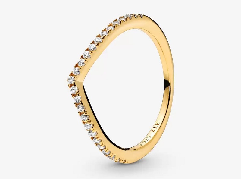 La tercera versión de este anillo es la de oro. La joya cuenta con un recubrimiento de oro de 14 quilates y está adornada con 25 cristales transparentes engastados en el aro. Esta pieza se caracteriza por su forma de hueso de la suerte, lo que la convierte en única y original. Puedes adquirir la opción que más te guste. En este caso, Pandora la tiene a la venta por 59 euros. Veamos más diseños de esta firma...