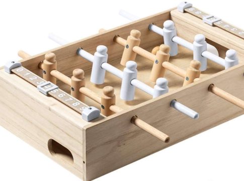 Juegos. Minifutbolín fabricado en resistente madera. Incluye 2 bolas y marcadores en cana de trigo, para así fomentar la utilización de materias primas naturales y reducir las emisiones contaminantes. Poner a prueba la habilidad con este divertido y adictivo juego. Presentado en atractiva caja individual de diseño y con acabado kraft.