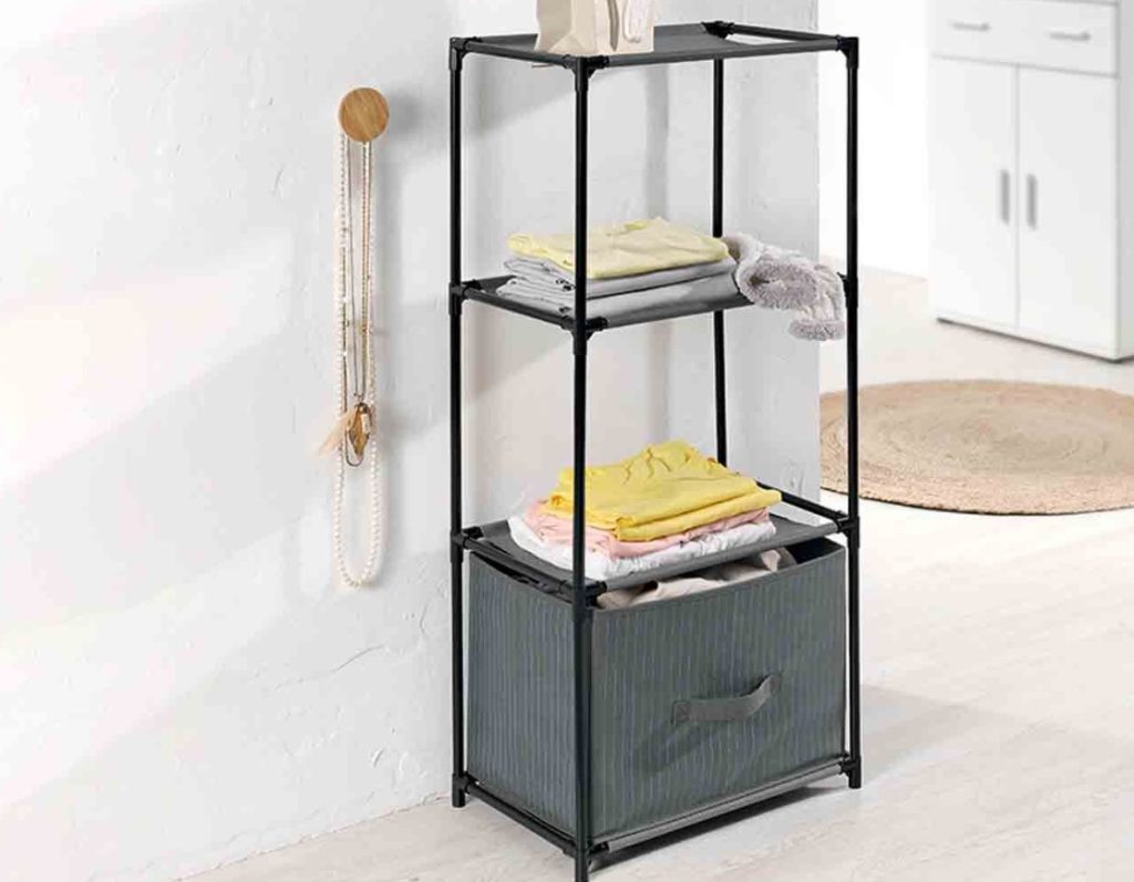 Además de las dos estanterías mencionadas, Lidl cuenta en su catálogo con otra de un armazón resistente con tejido fácil de limpiar. Tiene incluidos dos compartimentos abiertos y otro con caja extraíble, que incluye una práctica asa. Armarla es sumamente sencillo y no necesitarás ningún tipo de herramienta, debido a que sus piezas son encajables. Las medidas son 43 x 95 x 28 cm y está disponible en dos modelos: antracita y rayas. El precio de venta es de 11,99 euros.
