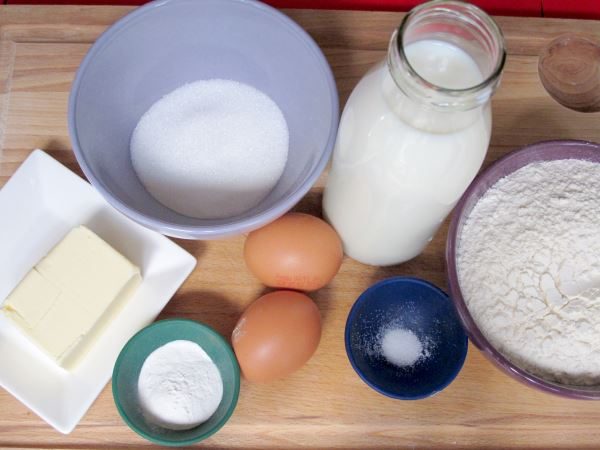 Para preparar la masa vas a necesitar: 300 gramos de harina de fuerza + 25 gramos adicionales para estirar la masa, 25 gramos de levadura fresca, 125 ml de leche, 1 huevo, 45 gramos de azúcar, 1/2 cucharadita de sal y 50 gramos de mantequilla.