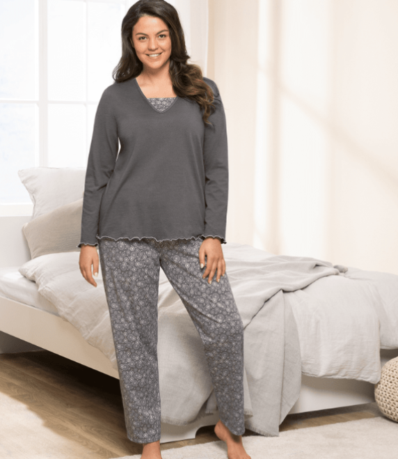 Además de ser cómodos y lucir bien, los pijamas de Aldi están disponible, al menos en el momento de escribir estas líneas (no sabemos si volarán), en bastantes tallas distintas. De esta manera, se tenga la figura que se tenga, es difícil no encontrar el modelo más adecuado para cada mujer. Es decir, que se pueden comprar desde la talla 44 hasta la 54.