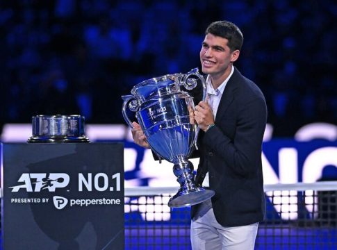 El tenista español Carlos Alcaraz recibió este miércoles en Turín el trofeo al número uno del año al final de temporada, en medio de unas Finales ATP que no pudo disputar por lesión, con "un sentimiento increíble" de "ser parte de la historia del tenis".
