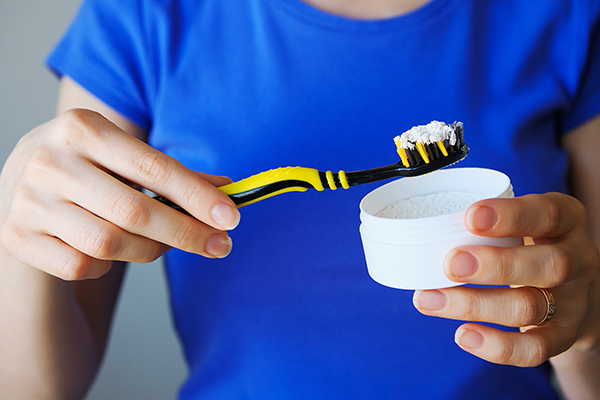 Uno de los usos más tradicionales del bicarbonato es como blanqueador dental, concretamente cuando han aparecido manchas superficiales, debido al consumo de café, vino, etc. Debe utilizarse con precaución para no dañar el esmalte o las encías, por eso no se debe sobrepasar su uso un par de veces al mes. Es tan fácil como hacer una pasta con agua (a la que le puedes añadir algunas gotas de aceite esencial como menta o árbol de te), y ponerla en el cepillo de dientes.
