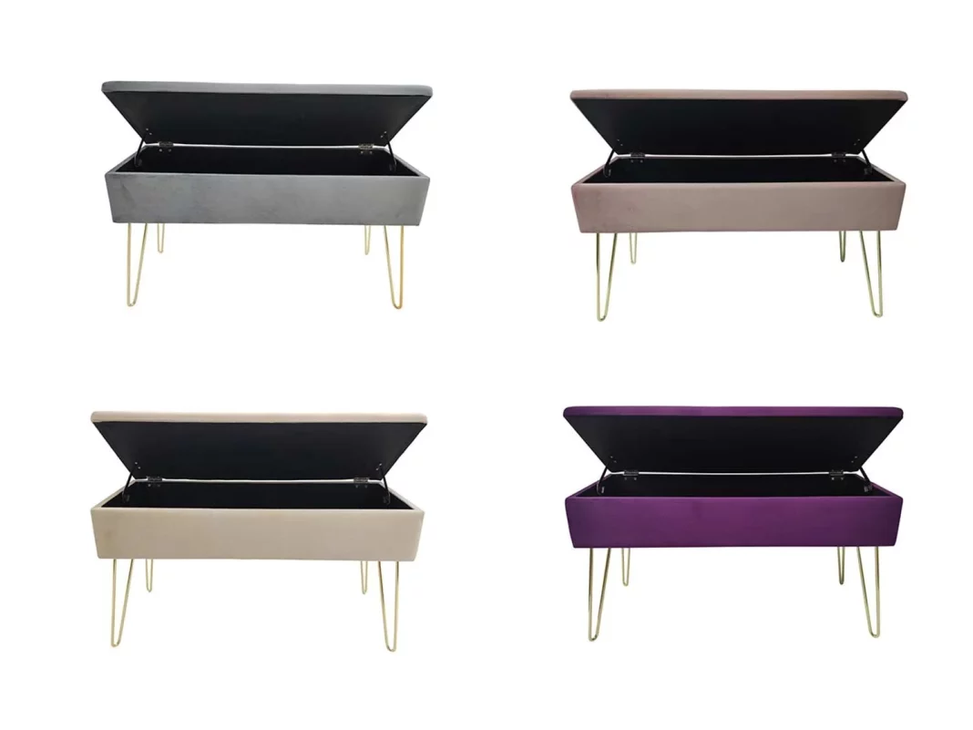 Los muebles 2 en 1 son una solución práctica y funcional para los espacios pequeños. Lidl nos ofrece este bonito banco estilo puff de la marca Echtwerk forrado con tela de terciopelo, suave y elegante. Cuenta con un sólido tablero de madera contrachapada con base de metal que le aporta una gran resistencia. El asiento es abatible para poder usar el espacio interior para almacenar pequeñas mantas, cargadores, revistas, juguetes, etc. Es perfecto para colocar a los pies de la cama, para el salón o el recibidor. Está disponible en color burdeos, rosa, gris o crema, y cuesta 59,99 €.