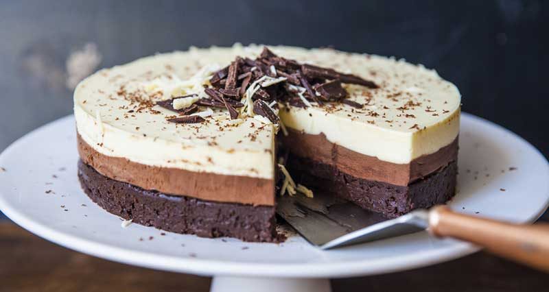 Entre todas las tartas que puedes hacer en casa, los hermanos Arguiñano, han enamorado a todos con la tarta tres chocolates. Esta tiene de especial su hermosa presencia, sus colores y su delicadeza. Es imposible que pase desapercibida, y es aún más difícil que así sea, cuando luce perfecta con cada una de las capas bien delimitadas.
