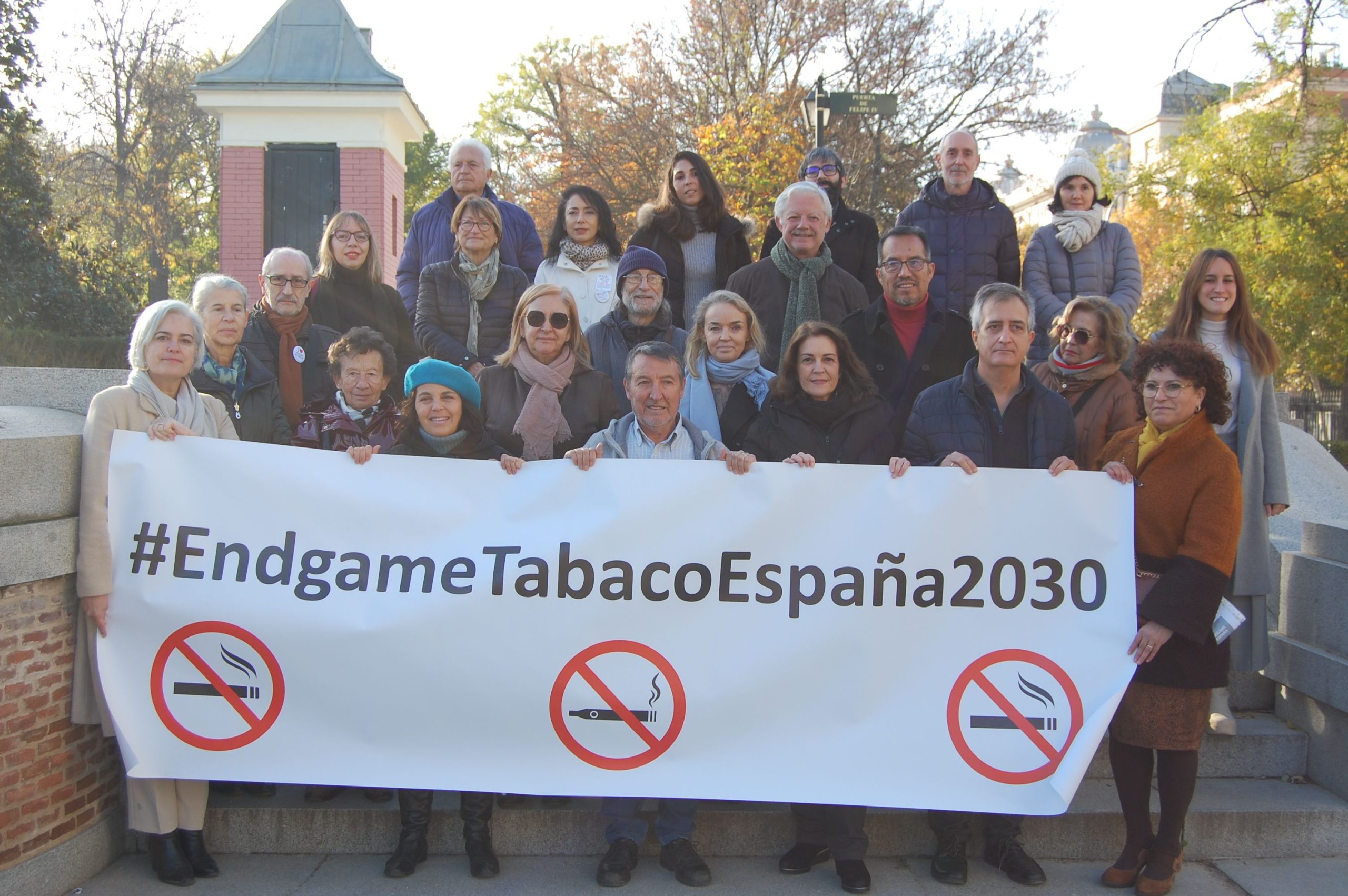 En un acto celebrado en el parque del Retiro, en Madrid, las entidades y organizaciones firmantes de esta Declaración, redactada sobre los retos marcados en la Declaración de Madrid-2018 por la salud y por el avance de la regulación del tabaco en España, han instado al Gobierno de España a establecer los cimientos de la primera generación sin humo, tabaco y nicotina, y llegar al final de la epidemia tabáquica, conocido internacionalmente como el tobacco endgame, o final de partida para el tabaco, en el año 2030, para salvar de forma decidida decenas de miles de vidas.