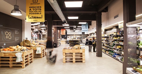 Los colores cálidos atraen al cliente al punto de venta, mientras que los colores fríos fomentan la contemplación y las ventas. Lo mejor es utilizar colores cálidos para el exterior del supermercado y colores fríos para el interior. En cualquier caso estas teorías del color no están muy claras como demuestra nuestra fotografía.