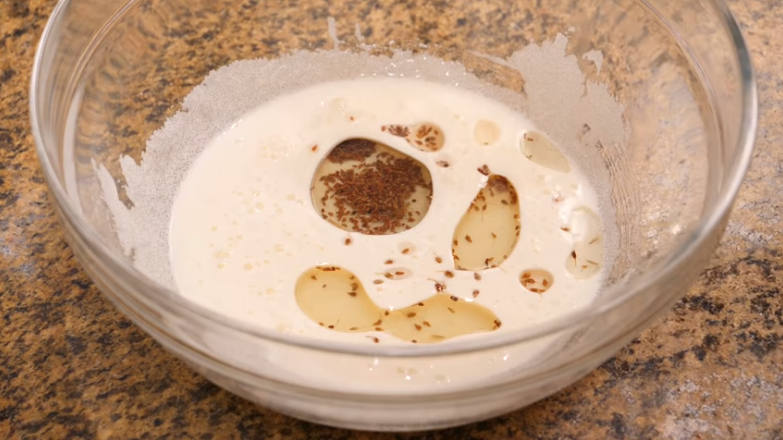 Incorpora la leche, el licor de anís y la esencia de vainilla y mezcla todo hasta que ya no se sientan los gránulos del azúcar. Hecho esto, vierte entonces el aceite aromatizado y mézclalo bien con el resto de elementos.