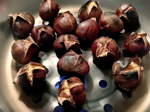 Claro que el tiempo de cocción va a depender del tipo de microondas que tengas, y tienes que estar vigilándolas porque sueltan vapor, por eso lo mejor es cocerlas con golpes de tiempo cortos, para ir controlándolas hasta que estén listas. La opción del microondas es buena si vas a usar las castañas asadas como ingrediente para otro postre o cuando quieres hacer tan solo un pequeño puñado.