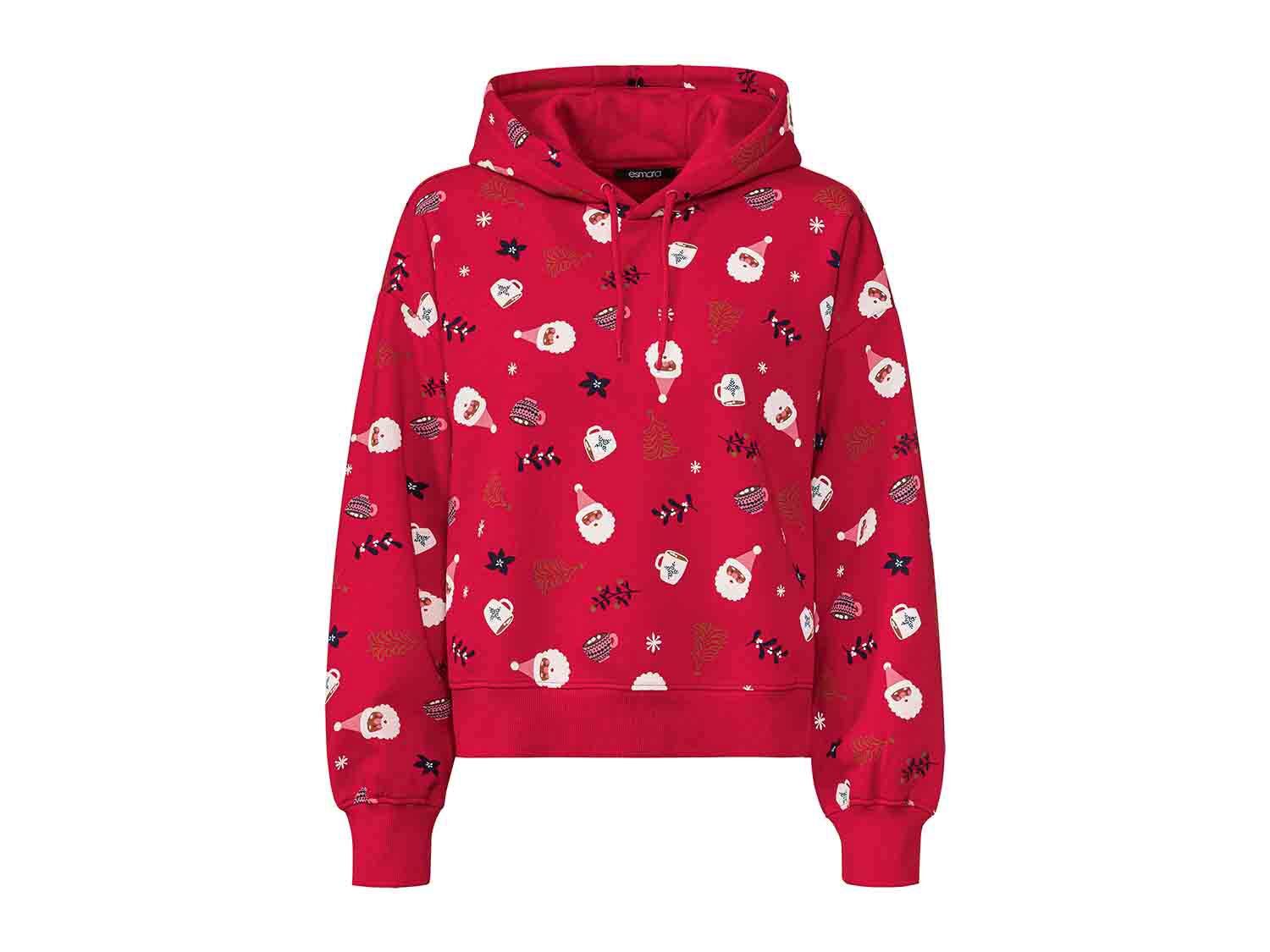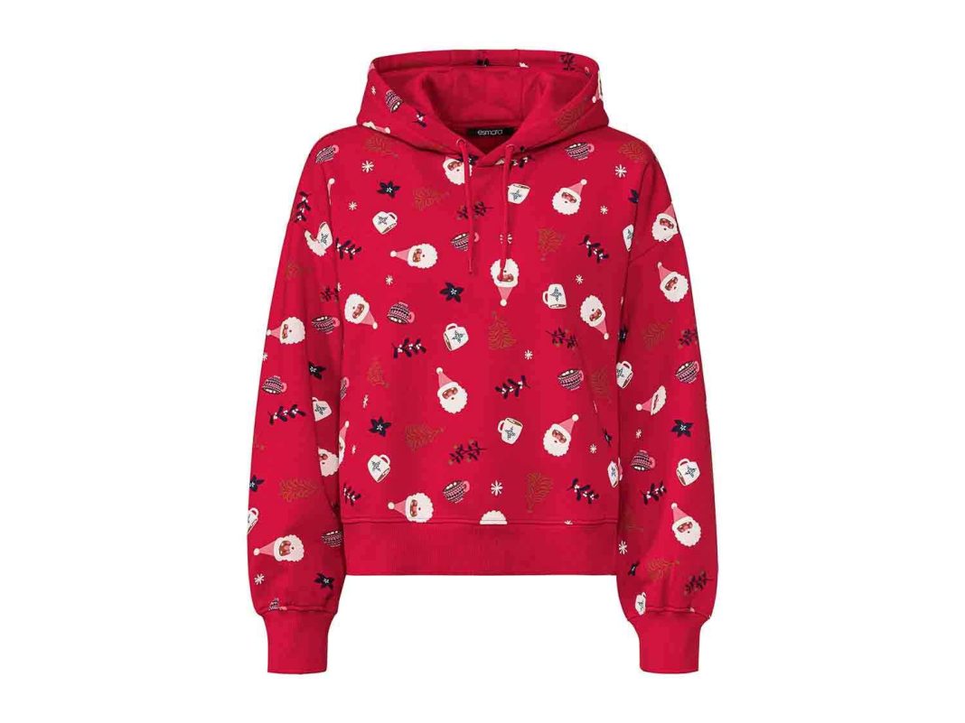 Si eres fan de la sudadera para estar cómodamente en casa, elige una con motivos navideños y comienza a lucirla ya. Este modelo está confeccionado con un 60% de algodón y un 40% de poliéster, muy sucre, confortable y con la parte interior de suave tejido afelpado, que le da calidez y confort. Es de corte ancho, con acabados elásticos en los puños y en el bajo y una envolvente capucha con cinta ajustable. Es de color rojo con figuras de Papa Noel y otros motivos navideños. Hay tallas de la S a la L y puedes llevártela a casa por 14,99 €.