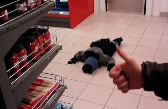 en todas partes, siempre hay un niño pesado que se aburre, que grita, y que chilla. Incluso están otros, que hacen tonterías. El de la foto, es el típico ejemplo de ese niño. Es un niño que cansa su madre, que no la deja comprar, y que hace cualquier tontería para llamar la atención.