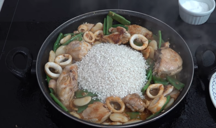7Cómo añadir el arroz a esta deliciosa paella mixta