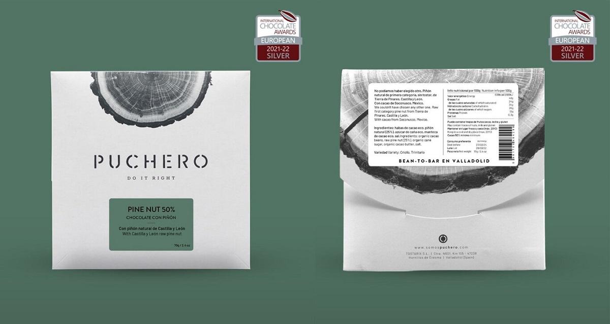 La edición especial de la tableta Pine Nut 50% de 70 gramos obtuvo el premio a la medalla de plata en la categoría chocolates negros de sabores. Esta elaborada con un rico chocolate negro criollo y trinitario, acompañado de piñón natural de Pinares sin tostar. Es el increíble trabajo realizado en España donde se potencia y respeta el trabajo de los agricultores que producen los granos más ricos del mundo.