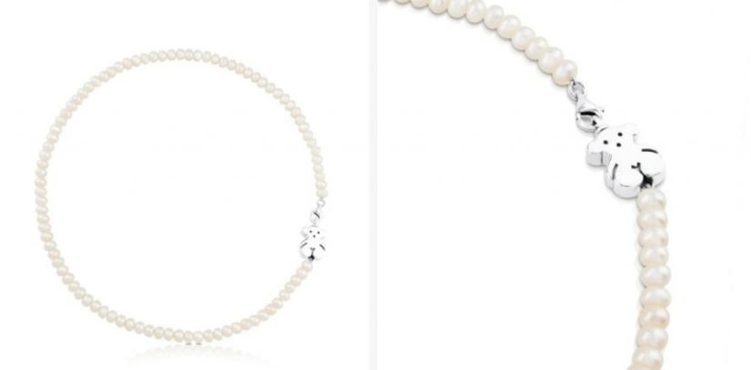 Hablábamos antes de un collar con perla y que nunca pasa de moda. Pues tampoco en el caso de los collares de perlas, en este caso, como no, con el atractivo y emblemático motivo del osito Tous. Es un collar de perlas y plata Sweet Dolls para lucir en momentos especiales, sobre todo con vestido y escote que permita su visión completa. Vale la pena lucirlo y comprarlo, y más aún por 99 euros. Las perlas están cultivadas de agua dulce y el oso es de plata de primera ley.