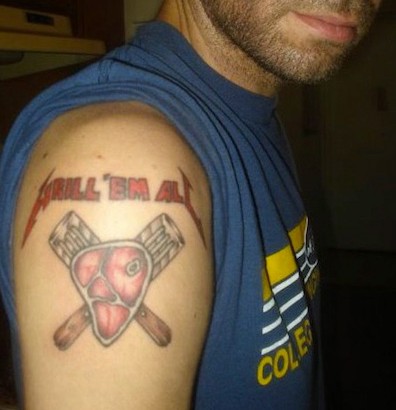 Hay otros artistas que buscan incursionar en el mundo del arte y crean obras a partir del gusto de los usuarios. En este caso, parecería ser que un fanatico de la carne y de Metallica no se pudo poner de acuerdo y decidió plasmar en su piel sus dos pasiones. Más allá de que el tatuaje no sea de nuestro agrado, es muy probable que este sujeto haga una de las mejores barbacoas del mundo. A continuación te mostraremos otros tatuajes que no han sido lo que esperaban.
