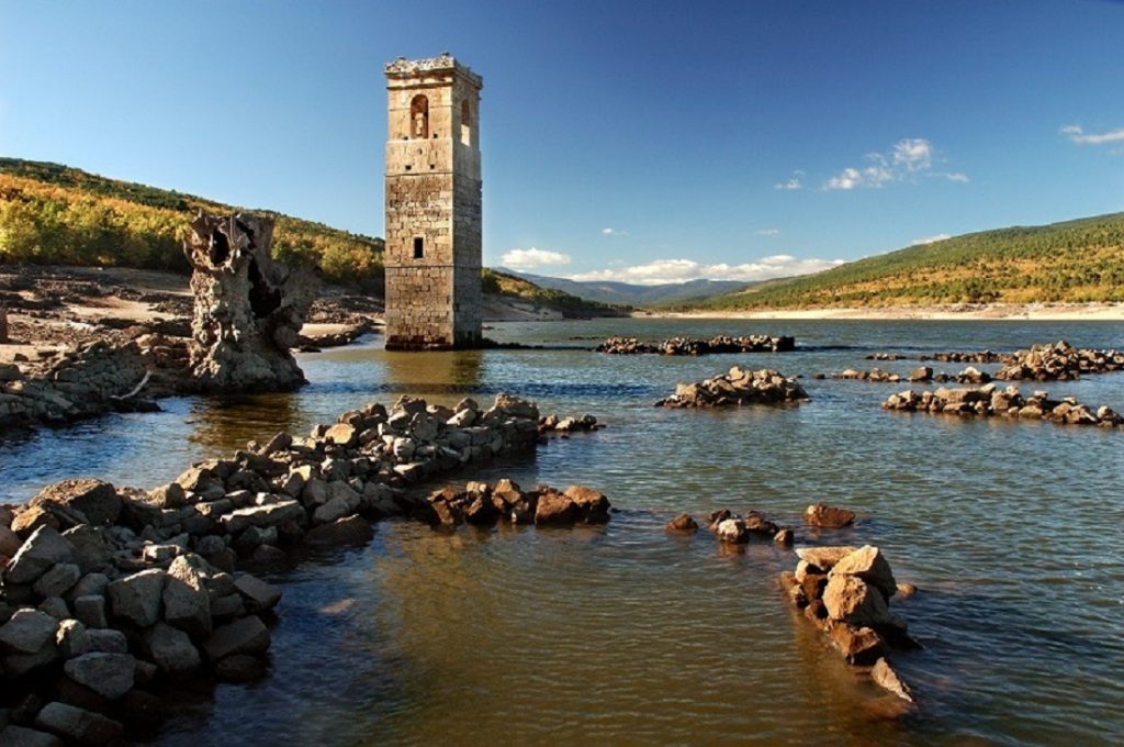 Muedra es uno de los pueblos de España fantasmales, es decir, que han sido abandonados… salvo por algunos fantasmas. Tras quedar totalmente inundado, sus habitantes tuvieron que irse a otros pueblos cercanos. ¿Pero está abandonado del todo? Algunos todavía escuchan el repicar de las campañas de su iglesia…