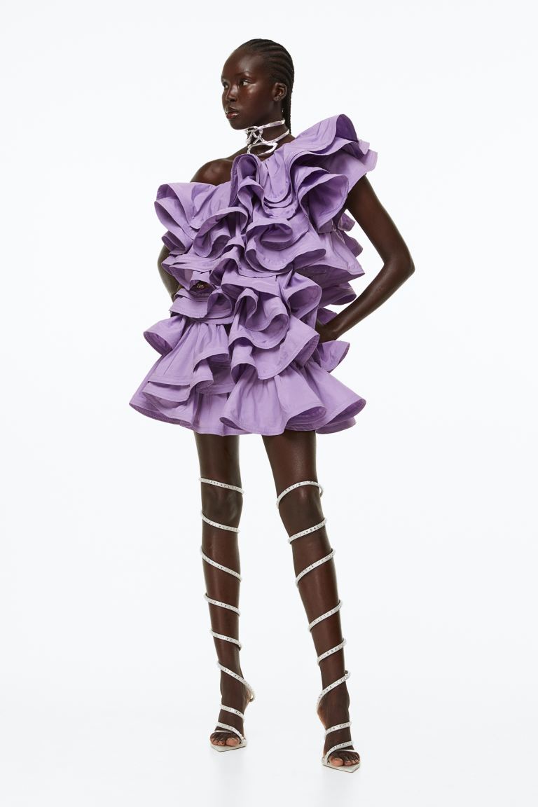 ¡Y empezamos fuerte! Sí, lo hacemos con esta “composición” que, sinceramente, no hay por dónde cogerla. El vestido en plan pomposo y con vuelos raros no le sienta bien ni a la modelo que lo viste. Pero tampoco puedes perderte las sandalias de gladiador con strass que se han marcado los diseñadores de H&M. Y ojo, que dichas sandalias encima no es que sean precisamente baratas: ¡son tuyas por 249 euros!