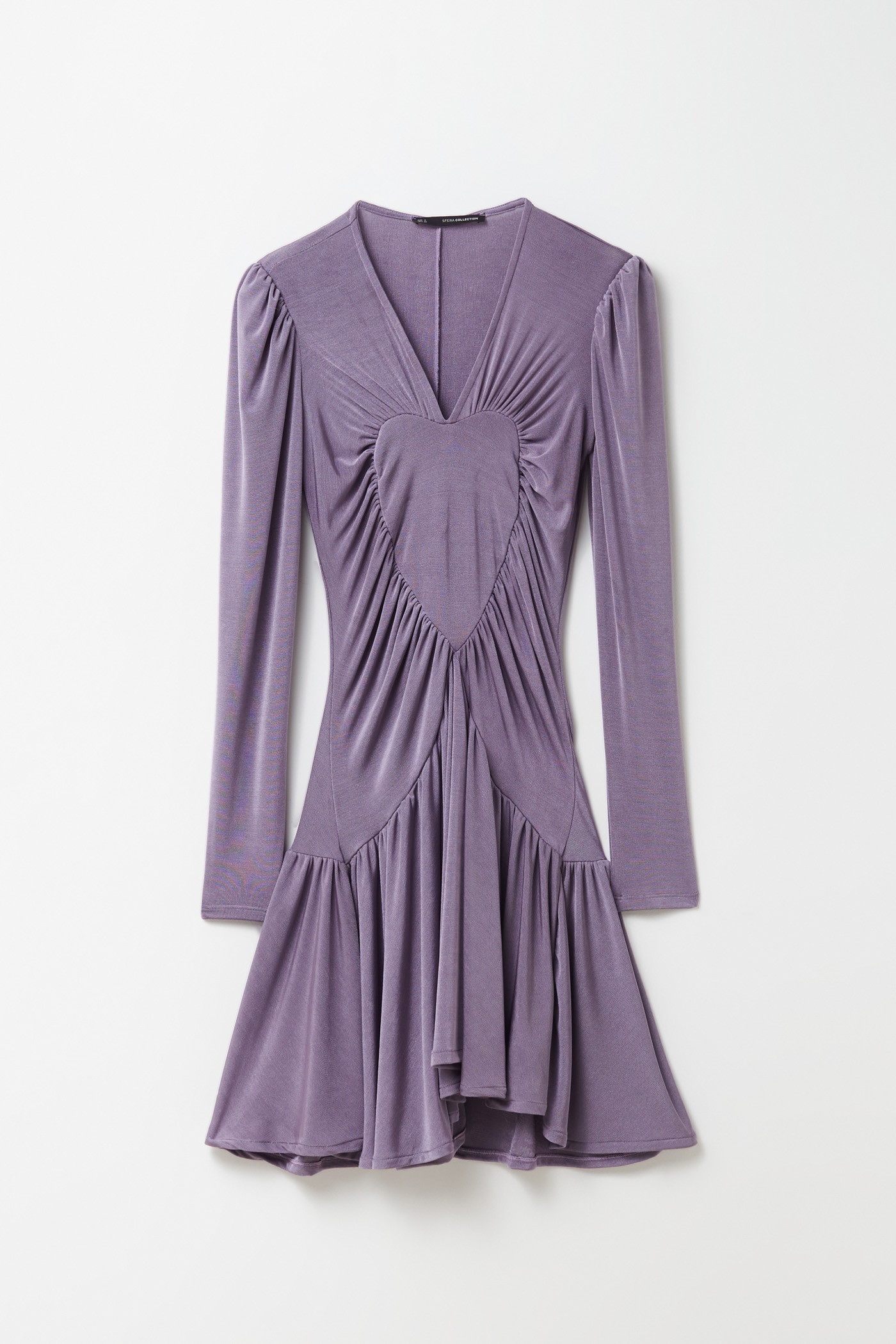 Si buscas un vestido de fiesta que se salga de lo clásico, este diseño de Sfera es muy especial. Se trata de un vestido corto, elástico y ajustado, con la parte de la falda con un poco de vuelo. Es de color violeta claro, y tiene un motivo de corazón en la parte frontal con detalles de frunces por todo el vestido que le dan mucho movimiento. Las mangas son largas y ligeramente abullonadas y tiene un escote en forma de pico. Combínalo con tus mejores accesorios y prepárate para una noche maravillosa. Está rebajado a 28,75€ (su precio inicial era de 35,99€).