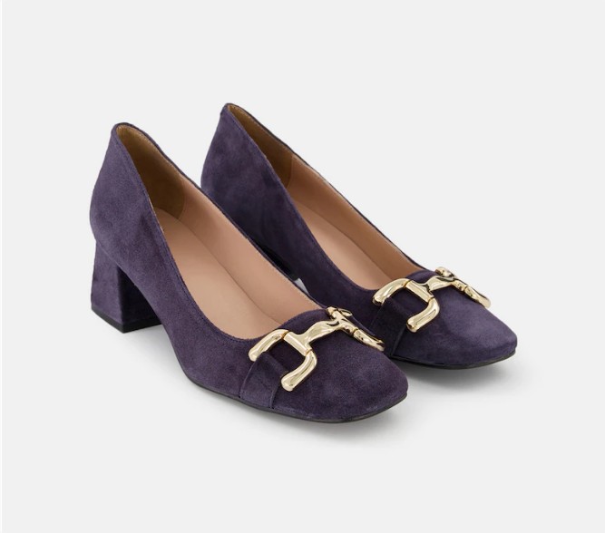Otra de las mejores opciones a tener en cuenta si estás buscando tacones bajos de El Corte Inglés perfectos para ir al trabajo realmente como, son estos zapatos de salón de mujer en azul marino con adorno de estribo y tacón bloque.