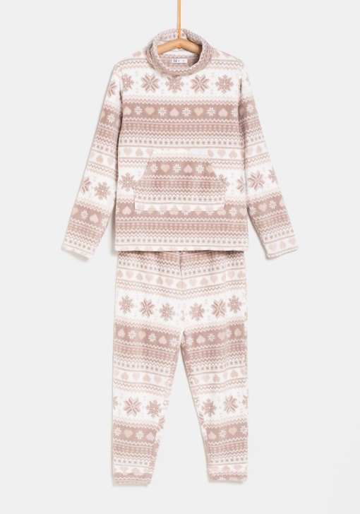 Si te encanta llegar a casa y ponerte el pijama, ahora en Carrefour puedes hacerte con un conjunto barato y muy calentito para el invierno. Tiene un corte relajado con un parte de arriba con cuello alto, manga larga y un bolsillo tipo canguro. El pantalón tiene la cintura elástica y la pierna recta. Ambas piezas tienen un estampado estilo jacquard con motivos invernales en color marrón claro y blanco. Es de poliéster muy suave y muy confortable. Ahora está rebajado y puedes conseguirlo por 12.99€.