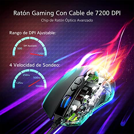 El Vivijo es un ratón increíble que posee 8 botones programables, retroiluminación RGB, la opción de elegir entre cinco posiciones de DPI y un diseño bastante llamativo. Un ratón muy interesante y versátil.