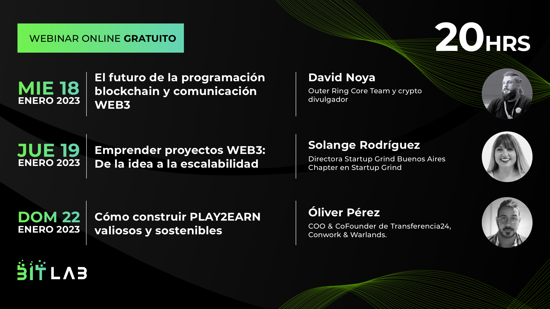 La plataforma educativa BITLAB ofrecerá seis seminarios formativos online gratuitos y en directo sobre tecnologías Web3 desde el día 18 al 25 de enero. Dichos seminarios son el preámbulo del Máster que los desarrolladores de BITLAB lanzarán al mercado el próximo 26 de enero. Denominado BITBLOCKMASTER, el Máster incluye módulos sobre tecnologías emergentes y estudios de casos prácticos y específicos en sectores que ya están aplicando la tecnología blockchain. El programa también ofrecerá aprendizaje sobre creación de modelos de negocio y propuestas de valor en torno a la cadena de bloques. BITLAB realizará un evento a las 19,00 horas del día 26 de enero para aclarar cualquier duda en torno al programa.