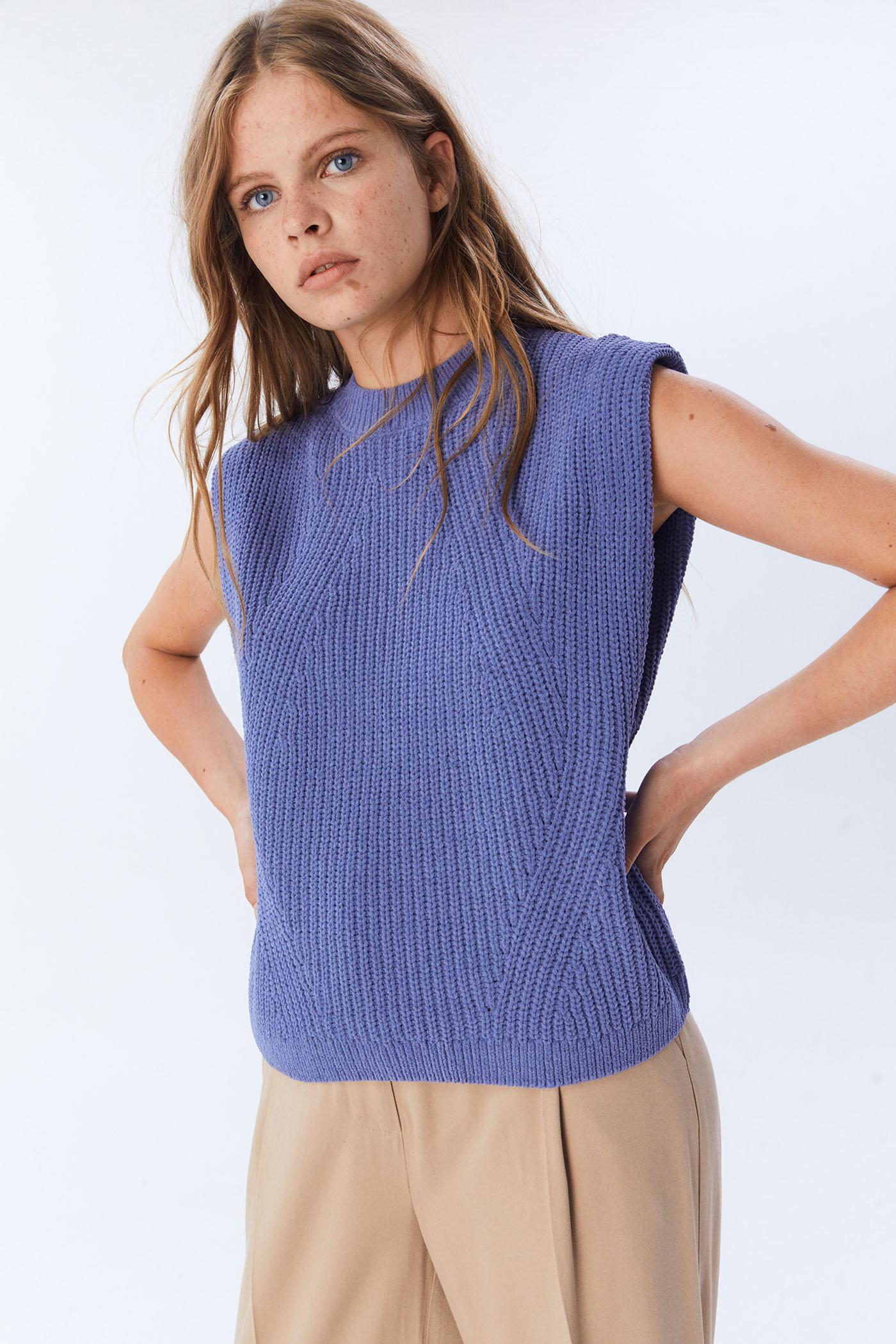 El chaleco de cuello caja chenilla es una prenda cómoda y atemporal que se ha convertido en una tendencia popular. Este chaleco está disponible en tres colores atractivos y versátiles: crudo, verde oliva y morado, y está disponible en tallas S y M. Su precio es de 17,99€ pero con una oferta especial puedes obtenerlo por solo 11,99€.