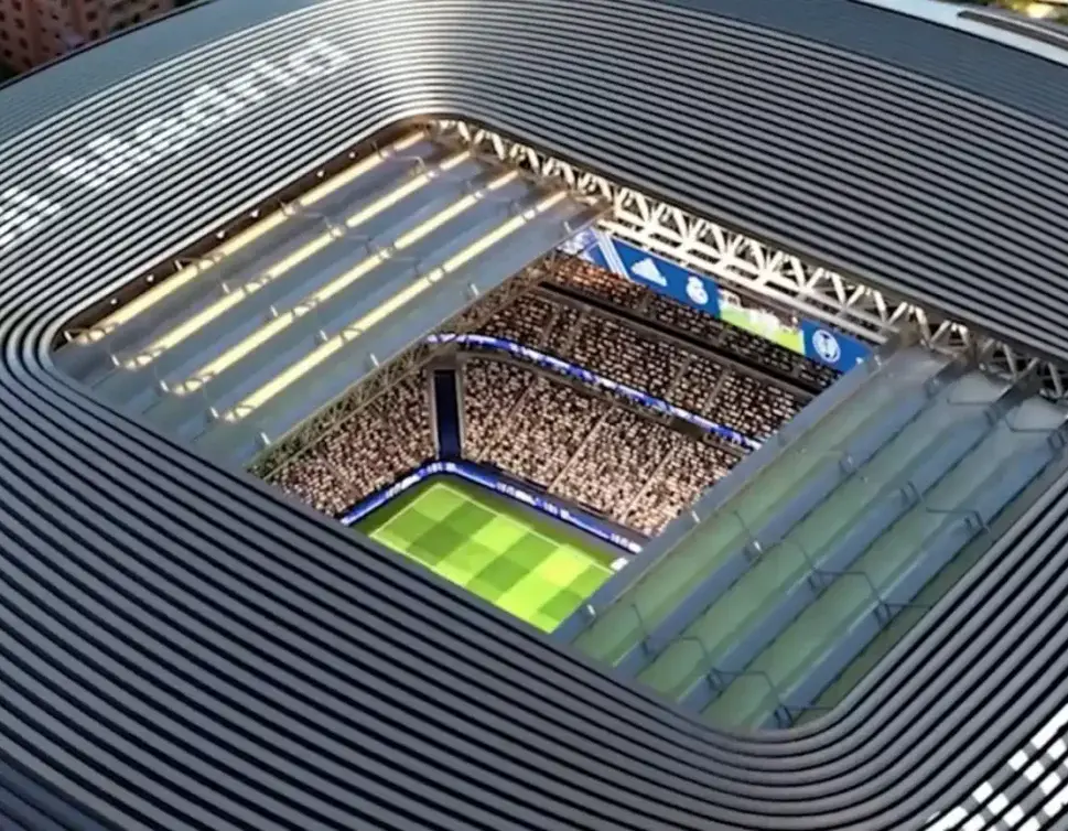 Lo que se ha podido conocer es que la cubierta del Nuevo Bernabéu ya empezó a funcionar sola, ya que hace poco fue que le pudieron quitar los apeos de los péndulos del lateral este.