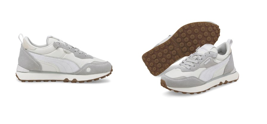 Estas zapatillas Rider FV Soft de Puma son la solución perfecta para cualquier entusiasta deportivo. Estas zapatillas están hechas con materiales duraderos para garantizar comodidad y resistencia. Viene en un atractivo color blanco/gris con líneas de color blanco, esta combinación de colores hará que se destaque entre el resto.
