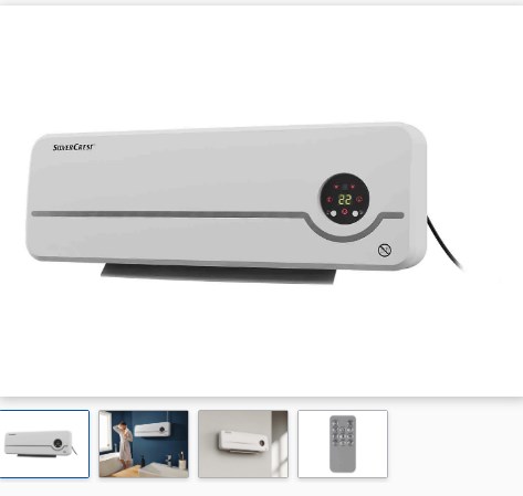Lidl está ofreciendo un artículo aún más barato, se trata del calefactor cerámico de pared 2000 W con pantalla LED, termóstato digital, temporizador y control de uso en el calefactor, que puede regularse a temperaturas entre 18º y 45º, a un costo de 49,99 euros, financiable, que calienta rápidamente gracias a la resistencia de PTC, aunque igualmente es posible utilizarlo como un ventilador.