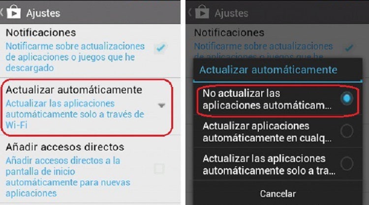 Lo mejor es desactivar este tipo de actualización así como las que se encuentran en un segundo plano. Solamente tú irás activándolas pero de manera manual. Porque solamente te centrarás en todas aquellas aplicaciones que realmente usas. Para las que quedan en un segundo plano no nos ocupen tanta capacidad de memoria.