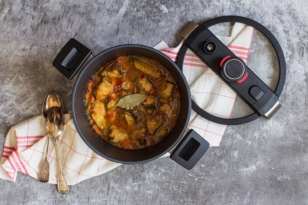 4Pollo guisado y verduras en olla a presión