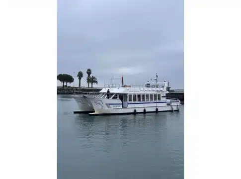 Esta embarcación dispone de 2 cubiertas desde la que los pasajeros pueden apreciar las increíbles vistas de la bahía de La Concha, las playas y el paisaje privilegiado de la costa donostiarra. Uno de estos espacios está al aire libre y el otro cuenta con amplios ventanales que protegen de las inclemencias meteorológicas. Además, este barco cuenta con un bar, baños, mesas y butacas amplias y cómodas.