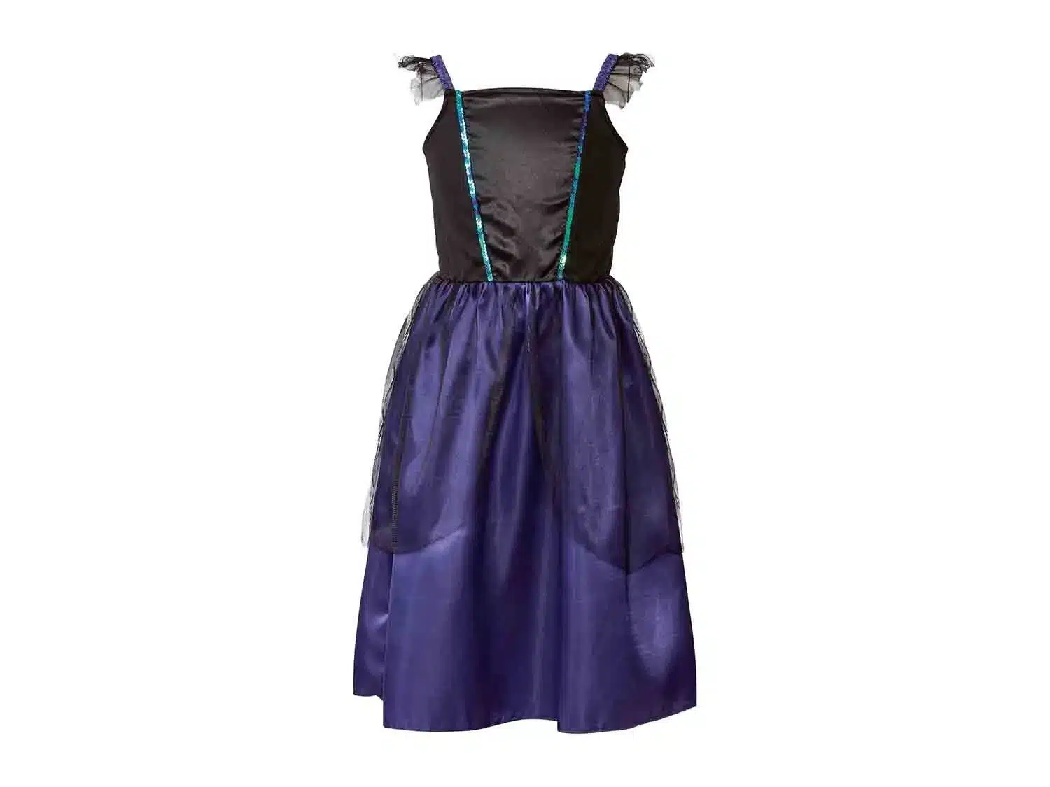Disponible en dos tallas, 110/116 y 134/140, para adaptarse a diferentes tamaños, este disfraz les permitirá sentirse como verdaderos personajes de cuentos de hadas con un toque oscuro y siniestro.