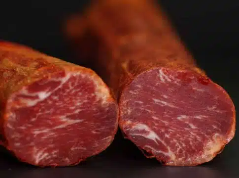 Son, precisamente, esas vetas de grasa lo que le aportan su sabor inconfundible y lo que convierte a esta carne en una de las más apetecidas. Esta grasa proviene casi exclusivamente de las bellotas que consume el cerdo. Según los productores, esto le aporta unas características cardiosaludables muy parecidas al aceite oliva.