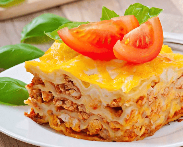 Puedes usar carne de pollo o de pavo, ya que sus niveles de calorías con bajos, pero son una rica fuente de proteínas y nutrientes esenciales. Para esta receta puedes emplear un pollo que ya este cocido u horneado, esto le dará más sabor a la lasaña.