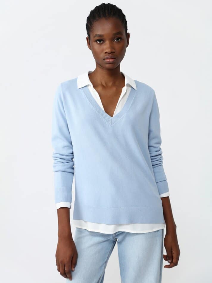 10Jersey de cuello pico celeste