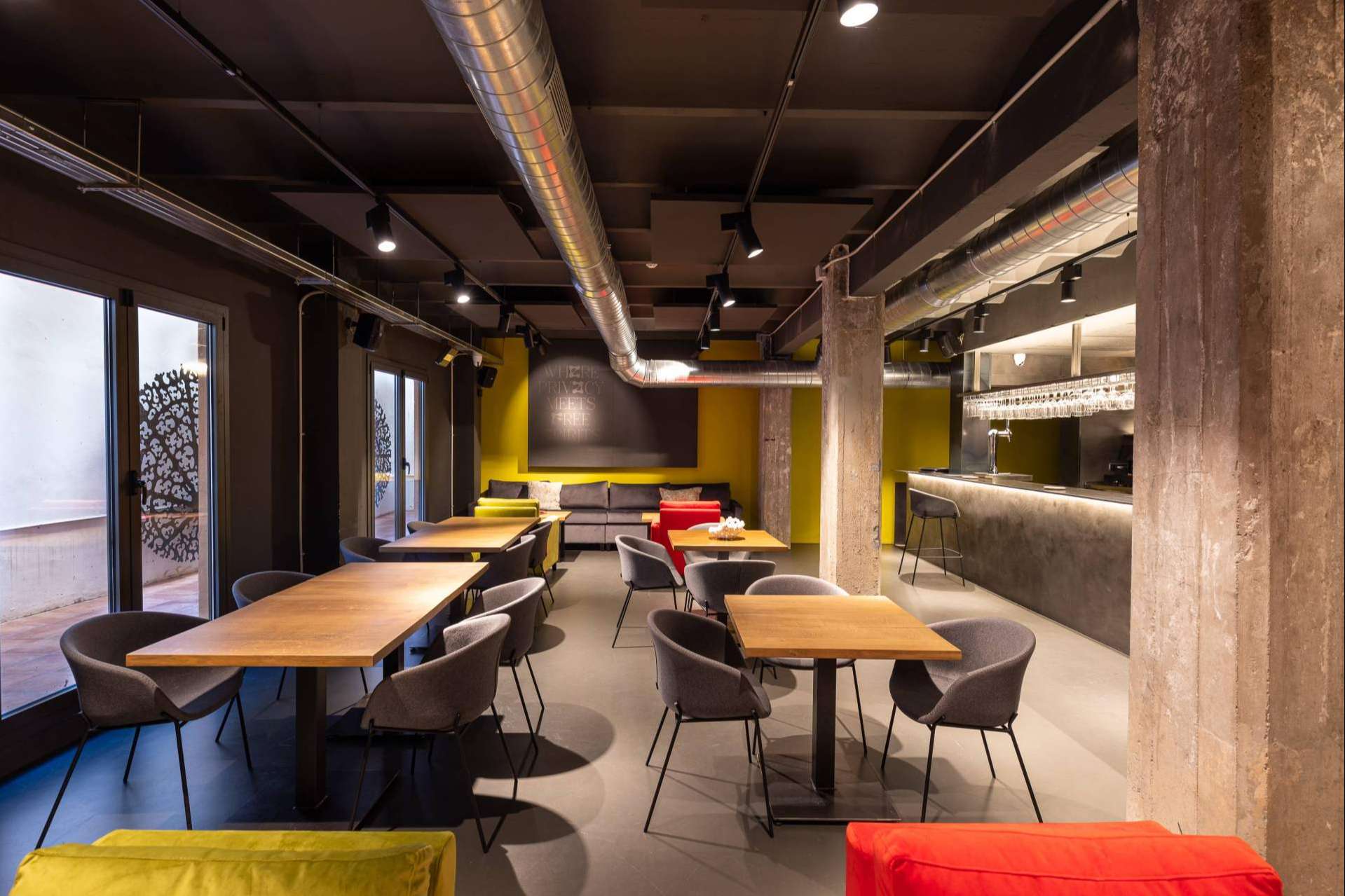 Distribuidos en sus más de 700 metros cuadrados, el club privado Barcelona cuenta con una sala principal, una sala de eventos y una sala polivalente.
