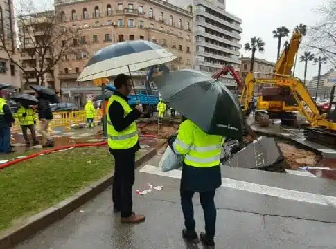 Las fuertes lluvias que afectan a la comunidad han provocado un enorme socavón de ocho metros en la Avenida Conde de Sallent, en dirección plaza España, que ocupa la acera central y tres carriles de circulación.