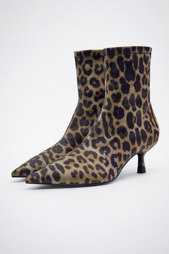 El animal print es un estampado que nunca parece pasar de moda. Sin embargo, solo es apto para las más atrevidas. Con estos botines con estampado animal de Zara, puedes elevar tus looks a otro nivel de sofisticación. Tienen un acabado en punta y un cómodo tacón medio de 6 cm. El corte del botín es de poliéster y elastano, así que se ajusta muy bien al pie y al tobillo. Cierra con una cremallera lateral, por lo que son fáciles de poner y quitar. Llevan una plantilla de espuma de látex para un mayor confort. Puedes llevártelos a casa por un precio de 35,95 €.