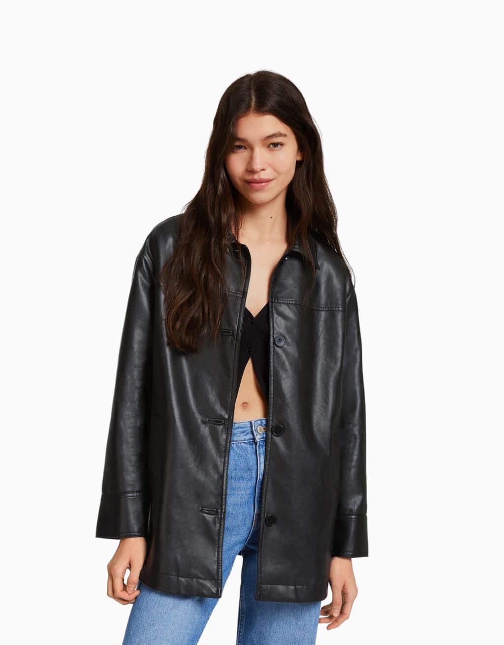 4Abrigo corto efecto piel, ideal en Bershka