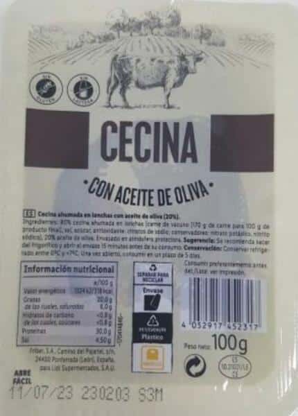 La cadena de alimentación Lidl ha retirado este martes del mercado varios lotes del producto 'Cecina loncheada en aceite de oliva' del fabricante Friber SA tras alertar de la presencia de la bacteria 'listeria monocytogenes' en la carne deshidratada.
