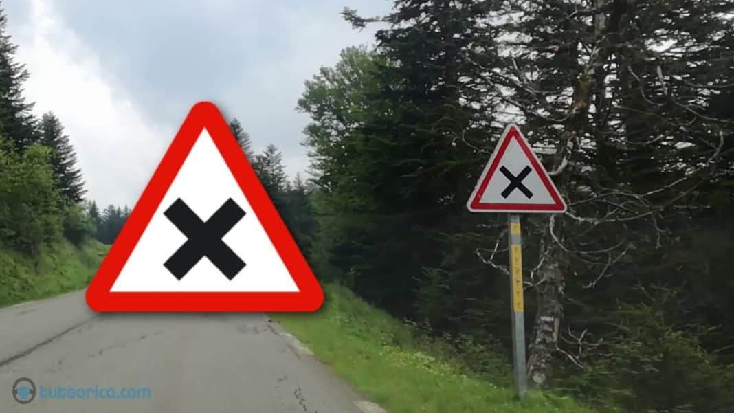 Conocida como P-2, lo que indica esta señal de triángulo de bordes rojos con una x negra en el centro es que estamos llegando a una intersección en la que la prioridad de paso la tienen los coches que circulan por el lado derecho. De hecho, sería bastante extraño toparnos con una señal de tráfico como ésta, ya que la misma normativa de la DGT dispone esa clase de prioridad en cualquier cruce.