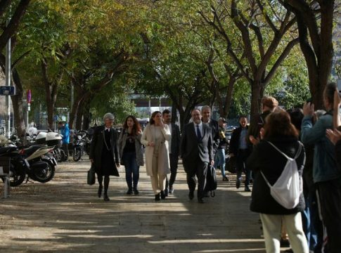 Colau iba acompañada de la teniente de alcalde de Derechos Sociales, Laura Pérez (BComú); el concejal de Derechos de Ciudadanía y Participación Ciudadana, Marc Serra (BComú) y su defensa, formada por los abogados Olga Tubau y Alex Solà.
