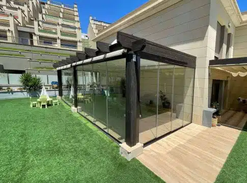 La empresa Airclos es una de las referentes en la fabricación de sistemas de cerramiento para porches y terrazas. Ofrecen una amplia gama de soluciones, desde cortinas de cristal, puertas plegables de aluminio, hasta techos transparentes, móviles y fijos.